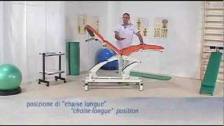 Il lettino ha otto sezioni mobili. La sezione del tronco è regolabile elettricamente con la pulsantiera fissa; le altre sezioni sono regolabili con sistema servoassistito da una o più molle a gas.