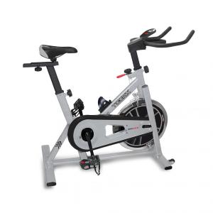 INDOOR CYCLE - Trasmissione a cinghia con pignone fisso. Sistema di frenaggio a pattini con feltri. Dotato di leva di sicurezza per il bloccaggio rapido del volano. Massa volanica peso 18 kg (bilanciato).