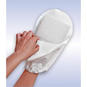 Per l’uso, si indossa la manopola sulla mano dominante, si bagna la spugnetta con poca acqua, si insapona la parte