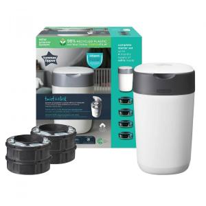 PROMO - SANGENIC TWIST & CLICK SPECIAL KIT - Contiene 1 Contenitore (bianco) (Dim. 29.7x26.2x39 cm) e 4 Ricariche - Twist & Click è l’unico che avvolge singolarmente ogni pannolino, sigillando in modo sicuro germi e odori - Contiene fino a 30 pannolini